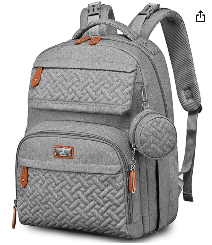 The most durable, spacious Diaper backpack. Great because the backpack design allows for hands free (needed when running into the gas stations!) and comes in a few different colors. (Personal Favorite- light gray! Holds up well against stains!)