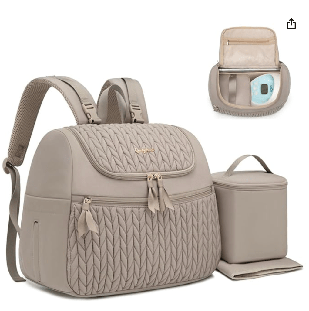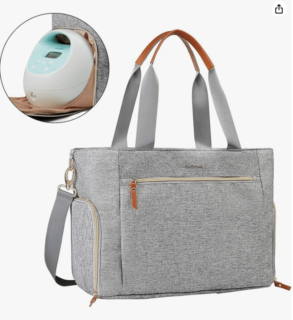 This was my very first pump diaper bag that I flew with. I love the amount of storage- ability to store milk, and room for putting diapers/wipes and snacks. It made going through the airport *slightly* (LOL) less stressful, and a lot more organized!