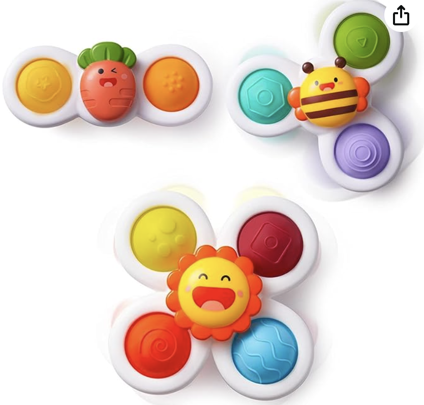 These are especially great when your baby is smaller- it gives them something to play with their hands (instead of touching all of the germs) and distract for a quick change. They are small- and can usually suction to your forehead (lol or maybe that’s just mine!). Also if you need to eat in a restaurant on the drive they’re great to have in the bag to stick to the table until the food comes! Get it HERE
