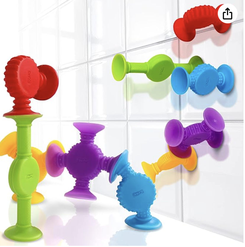 Filler for the small bags- I love these suction toys. They can stick them to the window or just play with them. The tube toys- animal tubes or just tubes- always seem to be a big hit. Get them here. Small Animals are super fun too because they also allow them to be creative with their animals. Finally, any Fischer Price Little people are a hit too- but these ones are our favorite.
